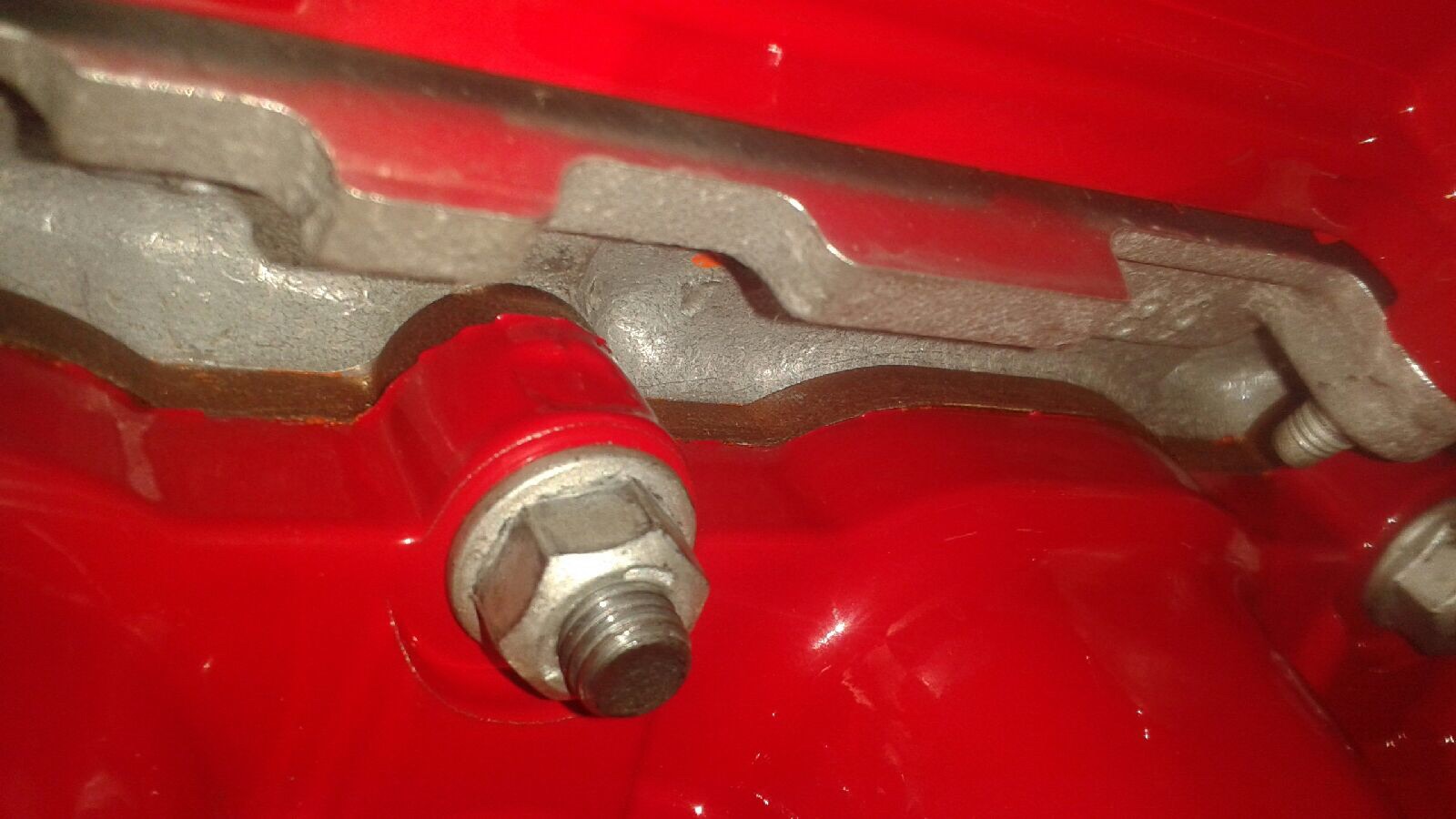The oil holes feeding the tensioner are blocked off because of the front bearing delete sleeves I put in. I wish I could come up with a good name for those and stick with it. :)