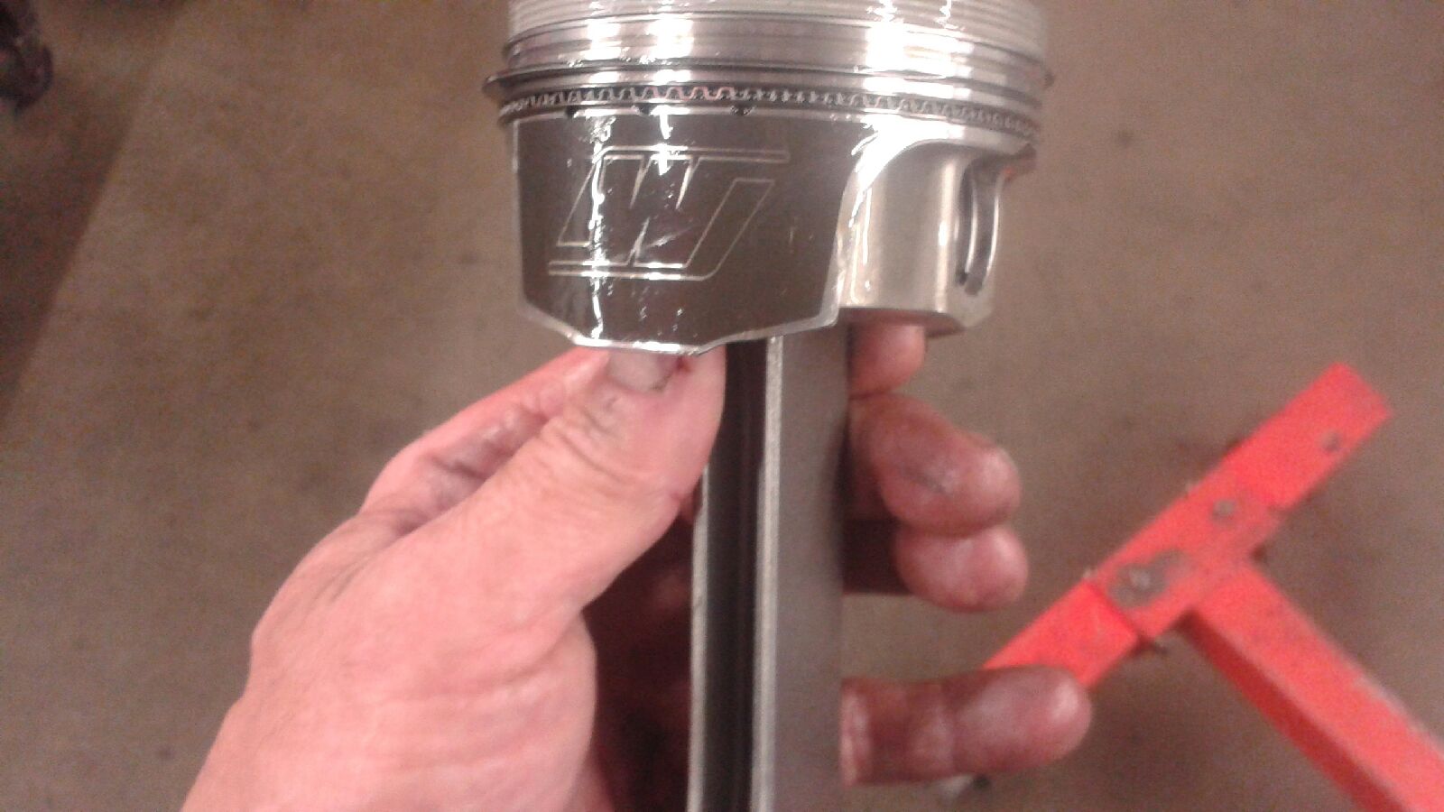 Pistons and rings installed on rods.