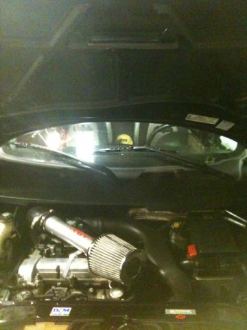 I cut up the CGS and tried this set up for a few days. with the filter right at the hood cut out , it was the quickest ever for about 4 mins. at a time before going into limp mode. Nailed it a few times and it would hit 24 ish boost , and kill the turbo while hitting third. This set up is what i will use when i get tuned , For now it's back to the box and the filter stickin out = limp mode once to twice in 75 miles of driving , And it only happens while cruising at about 60 mph. Scan gauges rule ! Limp cleared on the fly in about 8 seconds.