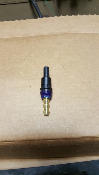 Here's a shot of the pcv valve mod I came up with. Out of necessity of course. I forgot the housing I made for it at work and just wanted to get the car running and out of the garage. I had an extra 1/8NPT fitting and threaded into the IN side of the PCV valve. Sealed with RTV and a piece of shrink tubing. Looks better then the large housing I had for it. I wonder if I can purchase just the PCV from GM..here's a pic