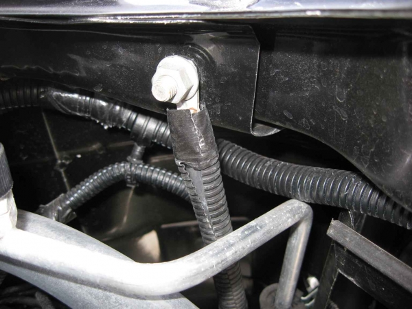 I discovered about the ground problem by accident. I connected my airhorns to the ground nut on the drivers side shock tower. This is the same place that a sticker says to use when boosting the car. My horns worked intermittently. I blamed it on a poor power source-I was using the post next to the fuse box that goes to the power steering. I was perplexed why my steering worked but the horn didnt. Eventually, I ran the power line into the inside fuse box, and still had the problem. Then, when I tried a different ground everything worked. I used a test light and found the shock tower to be a very poor ground. I used a ground strap and connected it to the engine block. To my utter amazement, the other shock tower still had a ground problem, indicating that the 2 shock towers dont have a good connection. Needless to say, I ran a second ground strap to the other shock tower.