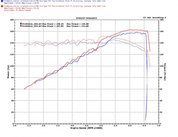 This image is from runs done back to back, within the hour. I have 21 dyno run files on my computer, some done at Promotion Tuning and another shop. As far as temp, humidity, etc., note at the top right where it says "CF: SAE". That is for the SAE correction factor, which is adjusted for the changes in temp, humidity, baro, etc. That does make comparisons valid under different conditions.