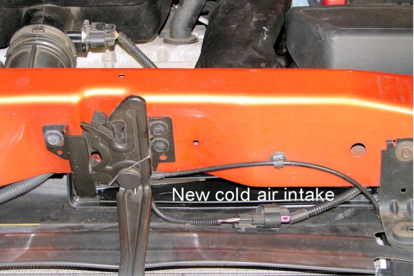 True cold air intake, cheap and no cutting a whole in your hood....