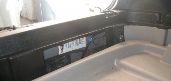 I had the back panal off for a long time when I was having battery trouble and it made it easier to boost the car. I kind of got spoiled and enjoyed using the extra places to store stuff. Once my dealer finally gave me a new battery, I knew I should put that piece back on, but hated the idea of losing all of that storage. So I found a solution. I cut an opening with my trusty Dremel tool. Until you open the storage bin, you cant see the hole. But there is enough room to put things under next to the spare tire.