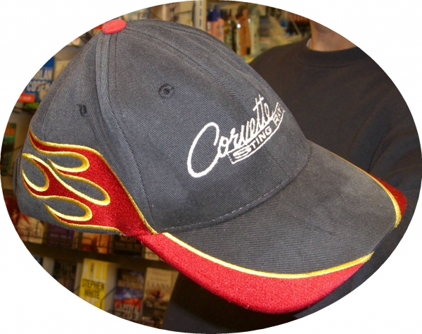 How is this for a perfect hat for my car. All I need to do is have an 'HHR' patch made to go over the 'Vette part and a Flame superhero.