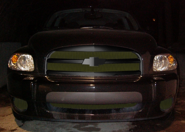 That bad original pic doesn't help. I was considering getting fog lights to install, but for now I think the mesh looks way better than those ugly plastic covers, rice rocket body kit stylez!PS: I think the BLUE is my favorite, too. Make it a nice triple clear coat chrome blue mesh. I like anything that can be described as "electric" blue. Reminds me of my 03 POS Cruiser I just got rid of. Almost got the HHR in the bright metallic blue, wife wanted black. Too bad she isn't the one that has to clean and wax it!