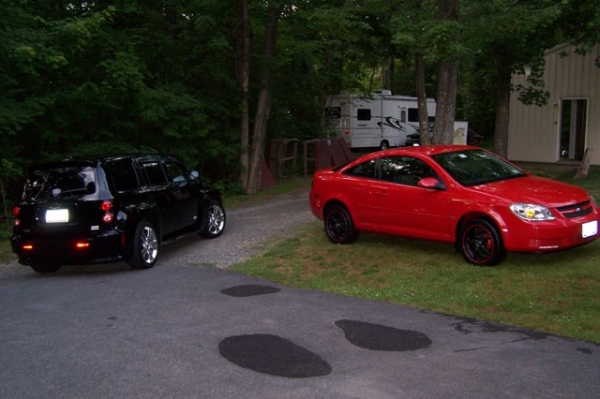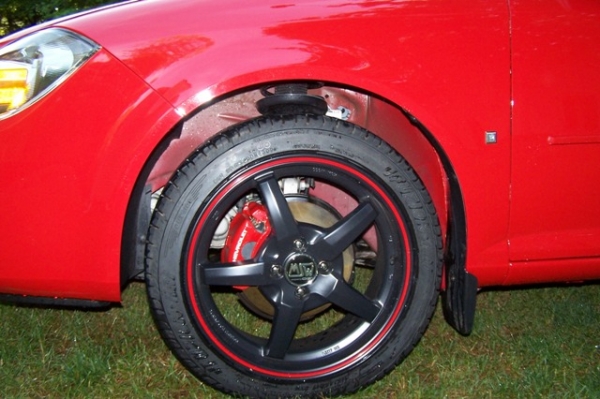 We did my son's Vic Red Cobalt first. We did the front calipers and the caliper brackets in red. On my Black HHR, we decided to do only the calipers in red and the caliper brackets in black. We used Duplicolor black caliper spray paint on the brackets. We only used about 1/2 of the paint in the kit for 6 calipers. We still have a good amount of brake cleaner left as well.