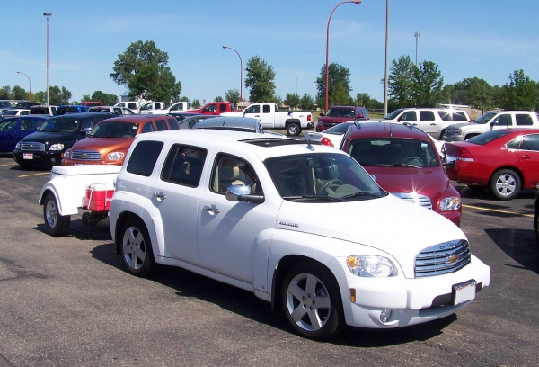 By the way....the HHR is HER car, but we use it for weekend runs to the lake rather then our full sized Ford van. With out the trailer, we were getting 29-31mpg highway, van gets 15mpg on a good day with a 40mph tailwind. Will find out this week what the trailer does to the HHR mpg.