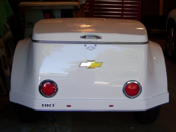 VERY NICE! That is AWESOME! I love how you added the chrome rings on your tails to match the trailer! And the bowtie & 'HRT' emblems are GREAT! VERY NICE!!!