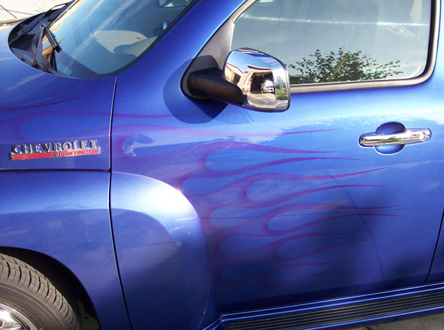 anyone else have a HHR with flames on it ? Or have the 1949 suburban emblems on the side of the hood ?
