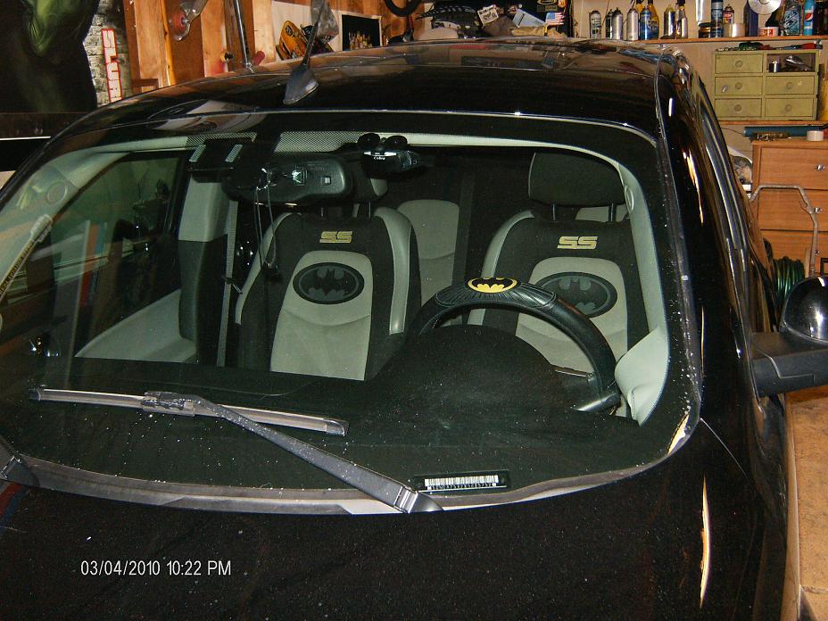 You know it fairly simply to get it embroidered on the seat cover. That's what it did, one just needs to remove the seat cover and take it to the person that sews appliques on hats and shirts and that stuff. Hand them your seat cover and show them the design and da-da! Looks factory. Well if you could say that batman look is factory.