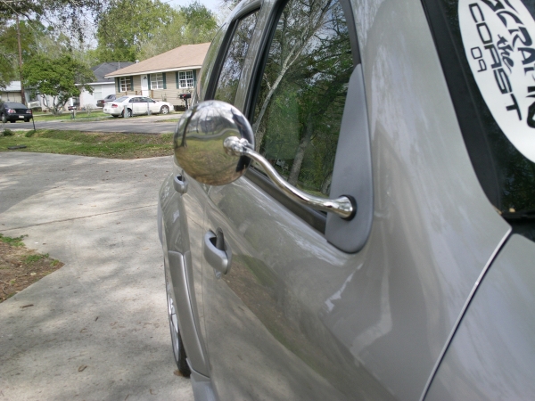 ah, thanks for the kind words... mostly :D . yeah, my styles are kinda clashing, but i like it ( i do intend on getting different rims ) . not sure what color i'm gonna paint the base plate, either black or silver, just gotta try it out. and i wouldn't suggest puttin this mirror on a panel, it is kinda small ( only 4 inches ) so the view isn't that great. hopefully i'll get em finished today and post better pics, later