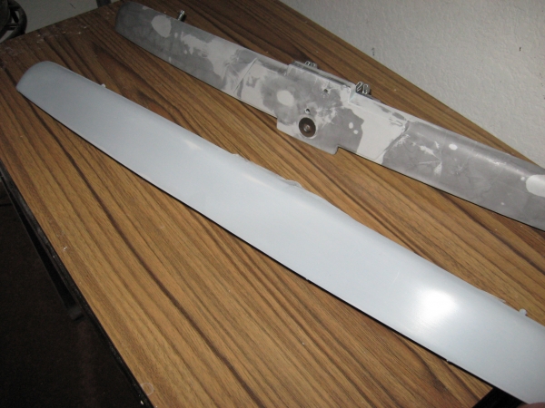 Mr. B cut the top and bottom of the bowtie that protruded on the top and bottom of the bar. He filled in the gaps, filed, sanded, prep for paint and this is where we are for the moment. I'll paint it later this week.