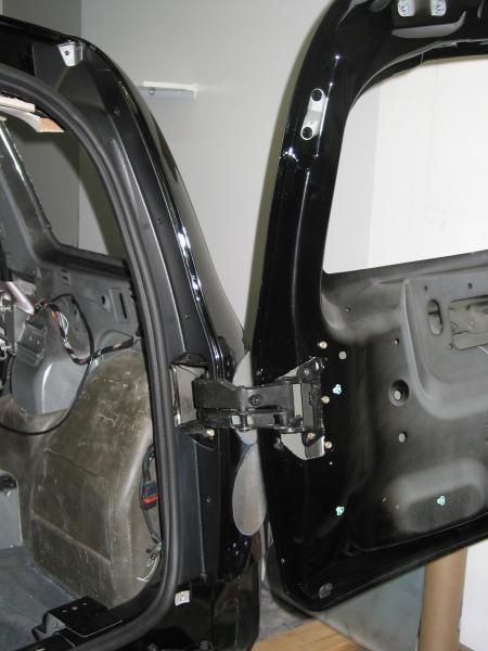 Well, here's a couple update pics...finally! First one shows door open to first detent on hinge...90-100 degrees. Second is at full open...170-180 degrees. I know, there's only one hinge, but with hidden hinges & the curvature & design of the rear body area, I found it impossible to incorporate the other hinge from this assembly (new body style full size GM extended cab pickup rear door). This is one BEEFY hinge, it'll easily handle the weight of this door. I'm triangulating a square tube structure inside each door to tie into hinge to prevent sagging. If I were to do another one in the future, I'd go with external hinges so two could be used. But, since this is not a commercial van or other delivery vehicle with the cargo doors being opened & closed many many times each day, it should be fine. I chose to go with hidden hinges, that's the sacrifice for stealth