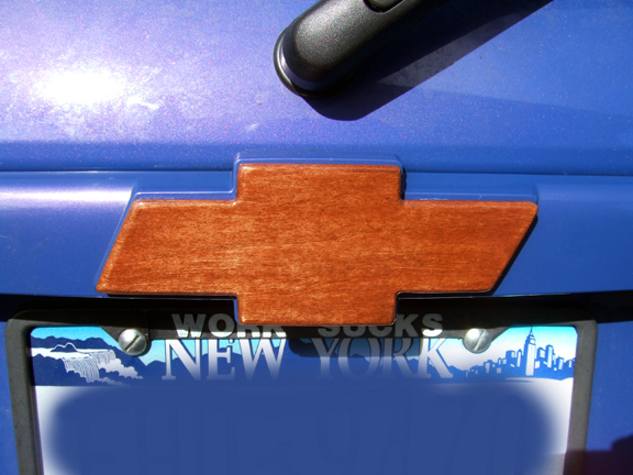 I'm not sure myself-gonna live with it. I hate the gold on blue-don't like the vinyl because it shows gold too. I think billet or brushed aluminum would be cool or maybe carbon fibre. Might end up just filling the holes and spraying the piece and leaving no emblem on-eh, I dunno.