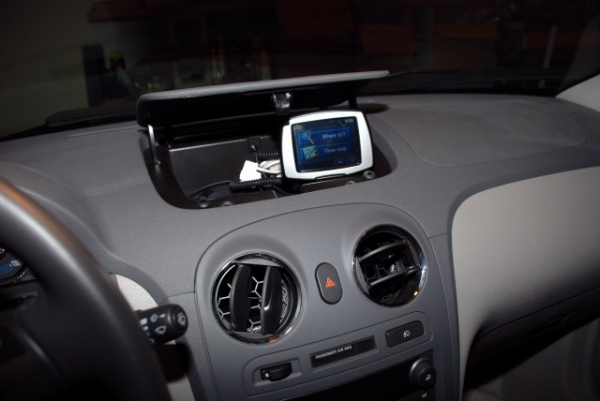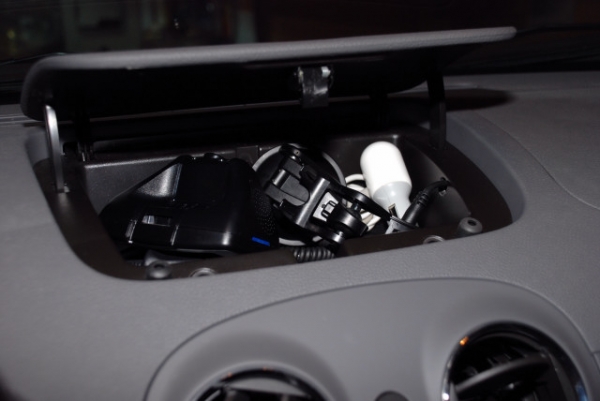 cord in the box's edge, then ran the cable down inside the dash