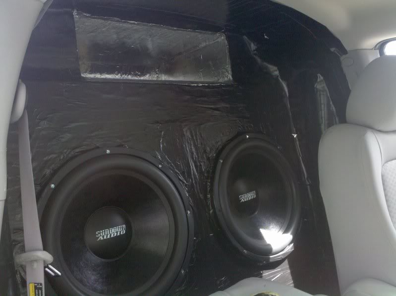 Here is one install I had in it. Attachment 29431 This was 2 18" Sundown Audio Z v.2 powered by Sundown Audio SAZ-4500D It managed to do a 153 @ 40Hz sealed on the dash with about 3200 watts clamped. It wasn't made to be a meter queen anyway lol It was pretty violent. Tore the car up and then some. Here is another install I had Attachment 29432 Again, same equipment. Did a 153.5 @ 37hz off 3200 watts clamped also. It really needed a larger port. Subs barely moved. Now my latest system that I tore out. http://www.youtube.com/watch?v=0SExXswWYQU Consisted of 2 18" Sundown Audio NightShade v.2 powered by 2 Sundown Audio SAZ-3500 Strapped at 1ohm. It managed a 153.5 at 30hz with the meter on the center of windshield (quieter by 2dB than on the dash.) It was mean and moved lots of air. The 140 you see in the video is my Xtreme run which is where the meter is on a stand 13" outside the passenger window centered from the bottom part of the window. 140dB was the top in my class for that but in eliminations I was having sub problems and lost and managed 3rd place :-/ But I took 1st in Loud-N-Low. I am now in the market looking for a new HHR Panel :) Probably this summer |