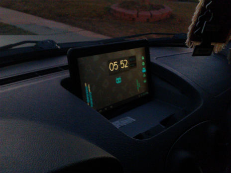 Scratch last idea this one is better. I am going to take out the top storage since I really don't use it and mount the Android there.