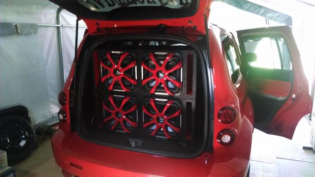 I have 4 12" kicker dvc L7s, 4 kicker 6x9s, 6 kicker 1" tweeters and 4 6 1/2 alpine spr60s. The 2 sub amps are Earthquake ph10000w/d1 amps and the 2 4channel amps are Earthquake 2200w/d4. Also have 2 stinger 10farat digital caps and 3 stinger batteries and 1 red top optima. The Headunit is a keenwood DVD/navigation Headunit. Got a 240amp alternator installed but plan on upgrading to a 320amp alternator later. The stereo is running around 7000 RMS right now.