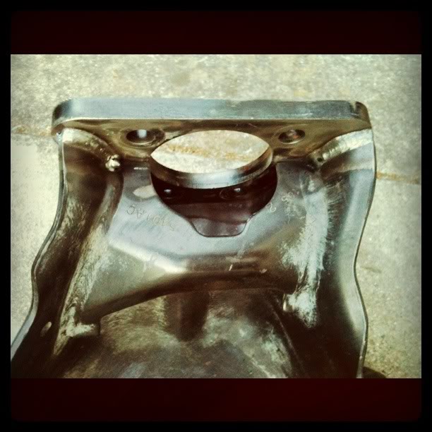 what to do? The car took a medium hit in an accident and the left rear was about 2 degrees off camber and 1 degree front to back. I've never done anything like this before but decided I didn't want to spend money on another axle so its worth a try. I dropped the axle this past sunday and strapped it into the passenger seat of my Mark VIII for a ride to work. After I finished my 10 hour shift today I tack welded her to a nice solid and level bench. With the axle centered and level took a few measurements and I used the angle finder on my iphone to set the base plate at-0.5 camber similar to the undamaged side. Buttoned it up with some fresh mig welds and tossed it back in the Mark for a ride home. Total time 45 mins not including yanking that bugger out of the car. questions, comments and concerns are welcome picture after cutting off hub base plate with die grinder and cleaning off factory welds Attachment 28915 Axle back at home! top view showing two new welds inside plate in addition to replacing the factory weld around the outside and bottom Attachment 28916 |
