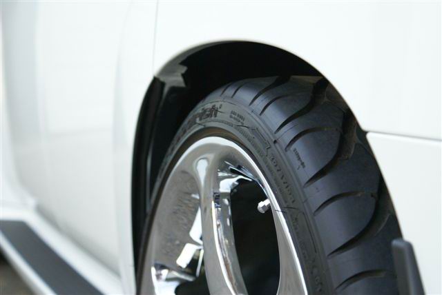 Rear wheel wells have been trimmed. I used a snap-on air saw blade and trimmed 15mm or about a 1/2 an inch. Took about 15 min a side then sanded smooth and used 3M undercoating to protect the exposed metal. She drives the car daily and no rubbing what so ever if the wheels rubbed I would be the first one to pull them off. I will take some pictures of the rear tires this weekend and I believe she has put about 3k miles on the car since. Thanks