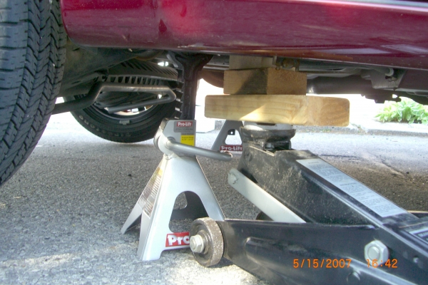 Hardest part for me was jacking up the car enough to get the jack stands in place. First, I tried under the rear sway bar. But, could not get enough height from my jack (I think it needs hydrolic fluid). Next, I did it in front of the wheels, but needed to use 3 2x4's.