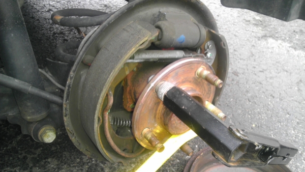 I bought a pair of rear brake drums, since I had a Pepboys gift card that was about to run out, so I pulled the drums off at the weekend. The car has 89000 miles, and the drums were last pounded off with a large prybar behind them a couple of years ago, when I just unstuck the adjuster and greased all the wear points while I was replacing the fronts.