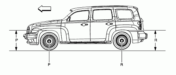 5. The dimension (P) for the left and right side of the vehicle is measured from the bottom lip of the wheel opening to the ground measured at the center line of the front wheel.