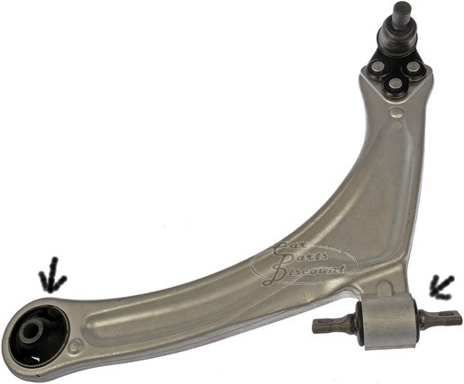 One thing you can also do when you're under your HHR with the silicone lubricant is to do the control arm bushings which are indicated by the arrows in the photo below. They might be dry or drying out enough to contribute to the groaning and creaking that you're having.