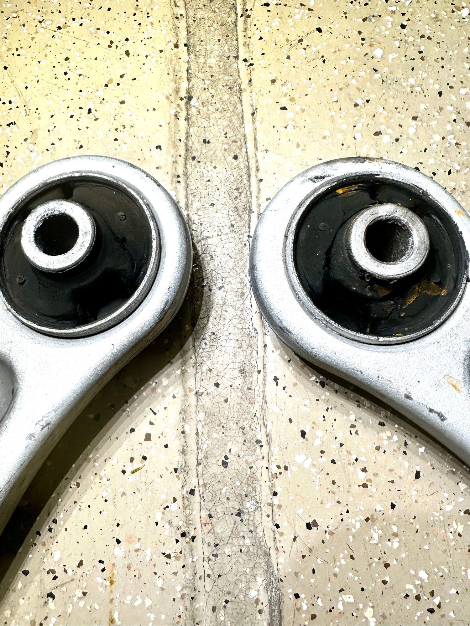 About a year ago, I replaced the original lower control arms in my son’s 2008. Today I replaced them again because we heard a clunking noise up front and the front wheels would actually move. This time I used the Moog parts instead of the supposedly better Mevotech arms. Hoping the Moogs last longer. At least this job isn’t too difficult. One bushing is actually broken. Both are severely worn after one year of service.