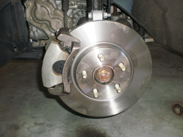 First, gather the parts you will need. Attachment 25266 Here is a comparision between the standard HHR rotor and the non Brembo SS rotor. Attachment 25267 Attachment 25268 Shot of the stock rotor behind the wheel. The Cobalt wheel has a large center plate. Attachment 25269 You will need to raise the wheel off the ground, and support the car. Once you remove the wheel, this is the stock setup. Attachment 25270 Before you dig in, seperate the two new caplier brackets. They are marked L and R. Attachment 25271 Remove the 2 bolts from the back of the caliper and support it. I use a heavy gauge wire off the strut spring. Attachment 25272 Then you can pop out the pads and remove the caliper bracket. Here is a comparision of the standard verses the SS. Attachment 25273 You will need to transfer the hardware from the old caliper bracket to the new one. Make sure the caliper pins have plenty of grease. Attachment 25274 With the caliper bracket off, the rotor will slide right off. Swap it with the new SS rotor and bolt on the new caliper bracket. Attachment 25275 Before you install the new pads, be sure to install the wear indicator if the new pads didn't come with one. These didn't. It just snaps on. Then install the new pads. Mine had the wear indicators on the inside, so I put that pad back to the inside. Before you can put the caliper back on, you will need to compress the piston back in. I use a 4" C-clamp and one of the old pads. Yes I saw the rubber material on the caliper. It's looked like that since the first time I saw it. Doesn't leak. Attachment 25276 Make sure you line up the "washer" on the back of the caliper pin so it fits flush with the caliper. Attachment 25277 Once you have that bolted in, this is what you will see. Attachment 25278 Tire reinstalled. Angle is probably a little different, but you can see more rotor now. Attachment 25279 Tighten and retorque lugs. Then do the other side. My hand brake was just starting to hit 3 clicks so I adjusted the rears a little. Once you finished, start the car up, keep the hand brake on and do not put into gear. Pump the brakes a few times and you will feel the pressure building back up. Then take it for a test drive to see how the brakes feel and listen for any noise. Be gentle on the brakes so they will have a chance to seat and break in. Now for the impressions, The old pads had about 36K miles on them and were close to the indicators. Old rotors had no scaring of any kind, but I was starting to get a little steering wheel shake again. So I knew brakes were in order. These new brakes with the SS rotors feel great. Since the cost by acquiring the parts on EBay verses a parts store was much better, the entire cost of part was under $150. I personally think this a great upgrade. Time will tell for any other issues, but highly recommend this to any HHR or Delta II platform owners. Can't remember who did this first, but you know who your are. A great big thanks for this info. :twothumbs: One note, since you have the tire off, it's also an excellent time to check your links, ball joints, etc. Just grap and see how they feel. Mine had no give. Also a good time to check for hub play, these hubs are new with about 10K miles on them. Not sure if the mods want to make this a sticky or not. |