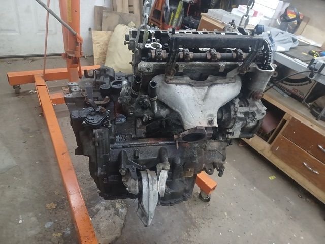 And then separate it from the cradle, getting ready to separate engine from transmission: