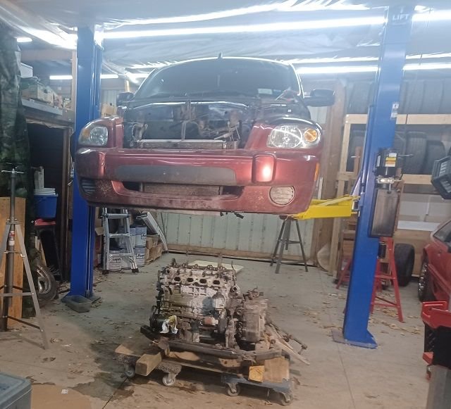 I'm going to tow Oldblue into the barn and pull the transmission. I'll probably drop the whole cradle with the engine and trans. Since the engine threw a rod, time to take off any useful parts from the engine and take the block to the metal scrapyard.