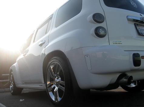 Leveled rear - Sway bar - Black calipers and drums - Blacked out muffler - CGS intake - All brackets removed from valve cover - HHR SS wheels and tires w/black center cap bowties