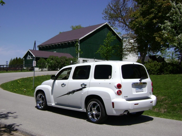 Modifications: 18" chrome 5 spoke MSR rims, Nexen HP sport radial tires, Custom body side graphic, fake bullet holes...(gives it that Bonnie and Clyde appeal!