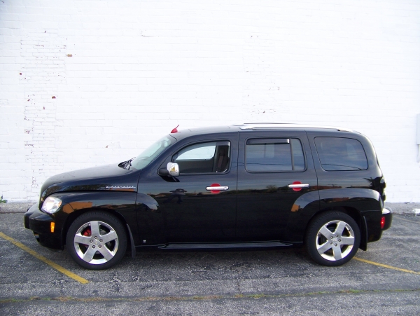 Exterior: red stubby antennea, red antennea bezel, in-channel window vents, red door cups, chrome tail light trim, 54 Chevrolet script, red lower gutter guard grille, 'HHR' 3rd brake light cover, and of course the ChevyHHR.net decal.