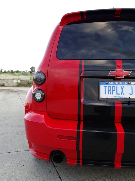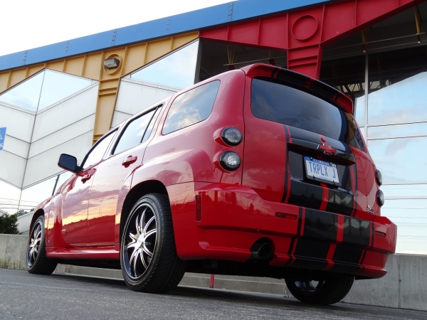 MODS: Custom vinyl stripes, vinyl ss & bowtie inlays, rear "HHR" emblem deleted, K & N Drop in w/no lid, Forged BPV, Clarion Dvd/Nav, Alpine rear passenger speakers with tweeters, Kenwood shallow 10inch with rockford 300watt,American RAcing 897 18inch wheels, TTR solid motor mount, GMTune upgrade, rear wiper delete, 3rd brake light "