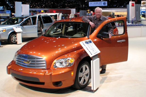 Finally, I couldn't resist...a photo of yours truly taken by one of the Chevrolet representives on the floor! Yes, Sunburst Orange!