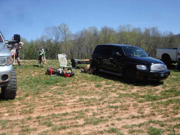 I took the pit bike out to a new motocross track in Morganton, NC Sunday. It was a great day to ride. Nice & sunny. Here's my 'pit' area: