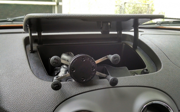 Here's the mount I use on my windshield. The mount is adjustable in any direction, I put the mount low on the dash and angle it up. I've been looking at mounting it in the dash compartment.
