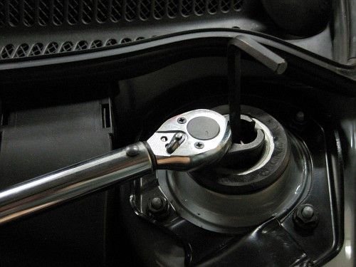 Yes a wrench or a pass thru socket and smaller socket similar to this, the strut nuts are 21 mm
