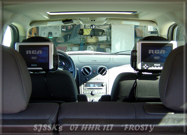 Not in my HHR but we did in the Equinox. 2 channel Wireless head phones, can plug the play station or game boys right into the screen. Player is mounted under the front pass. seat.