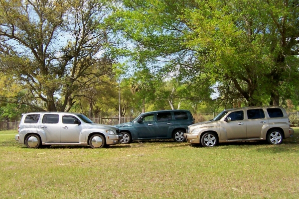 Thanks all. The one on left is MY HHR, the one in center is my wife's, That I said she had to get so she would stop driving MY HHR. Then the daughter get's hers cause she thinks mom & dads are Hot cars.....OOOO she is just so smart ????