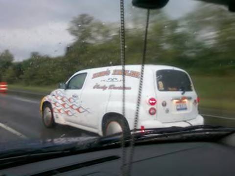 My dad is a truck driver, and he's really into my HHR. I ever since I got it, he thinks there cool and says how the big chrome grill reminds him of old cars. I personally don't feel the "old car connection" he does since I was born in 1992, but I love my HHR none the less. Anyway, he takes pictures of some of the HHRs he sees on the road when he can to show them to me. I've also seen quite a few interesting HHRs, but I don't usually have my camera in my car. Since he keeps his camera in his truck most of time, he's taken most of these pictures.
