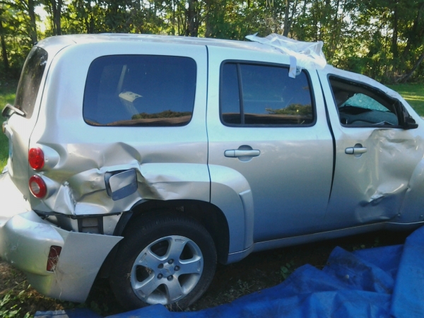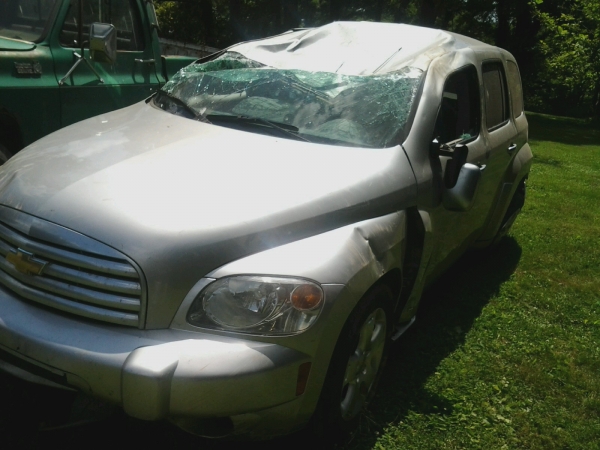 With the damage to the "A" and "B" pillars, that HHR will never be more than an "organ doner" to keep its more fortunate kin on the road.