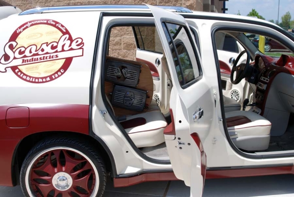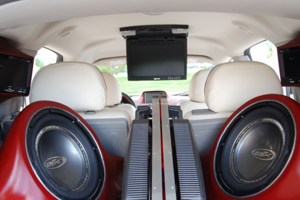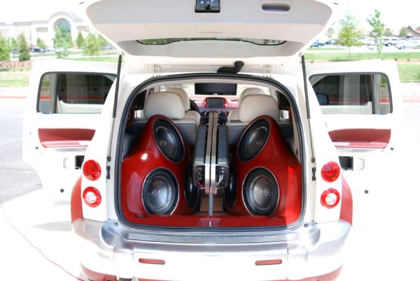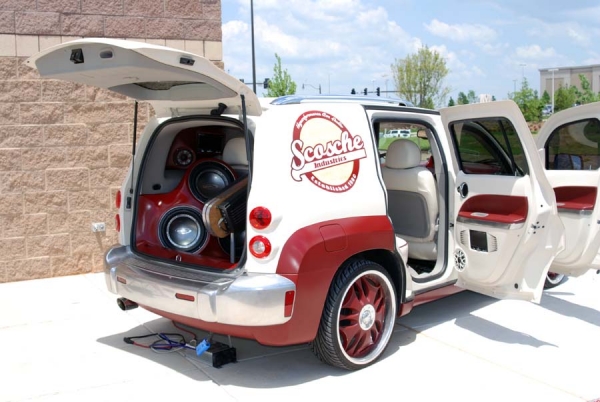 Well I went to Best Buy today and this was outside with the radio blasting! I asked him how much it cost to do this to the HHR and he told me $45K! It looked and sounded great… but for $45K wow that’s a lot of money… They put a LCD in every door, a 15 inch in the middle, another in the dash and two more with the subs…