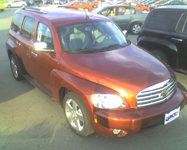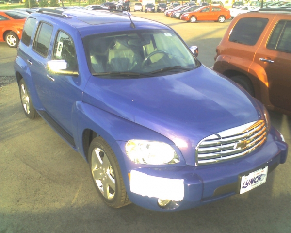 Here are some pictures I just took of some fresh off the truck HHR's with some new 2008 colors. (I'm sorry for the crappy quality; my cell phone was the only camera I had with me.) I have to say, even though the terrible picture doesn't do it justice, the Cardinal Red Metallic is absolutely STUNNING. It's sporty and classy at the same time. The heavy metallic finish just GLISTENS. Just my opinion, but I don't think there is a past or current color that comes close to how great this color is. I'm pretty pissed that I won't be able to get it on the HHR SS. The Blue Flash Metallic will absolutely be a love it or hate it color. It's really two colors; blue and purple depending on how the light hits it.