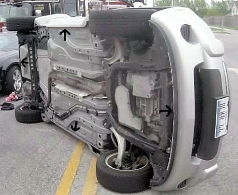 I'd think you'd want to place them just inside of the rocker panel pinch welds as I've indicated on this photo of an HHR laying on its side. I'm thinking that you can also mount them just behind the front and rear bumpers, hope this helps a little bit Kev.