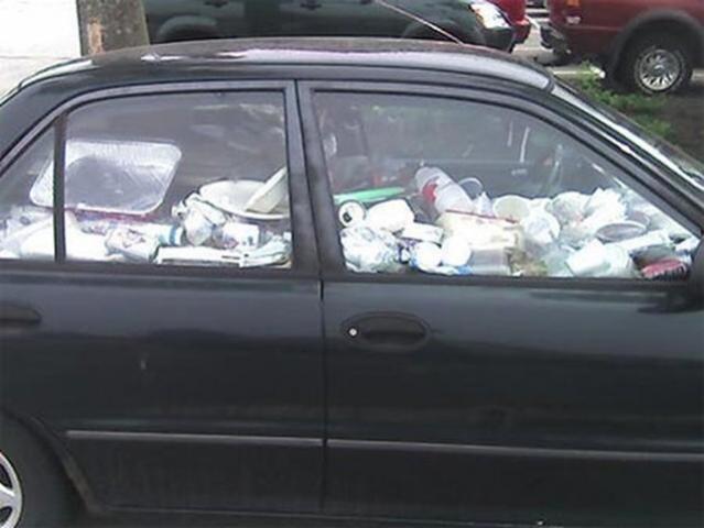 Sometimes , ya gotta eat and run, He does clean it out every weekend though.