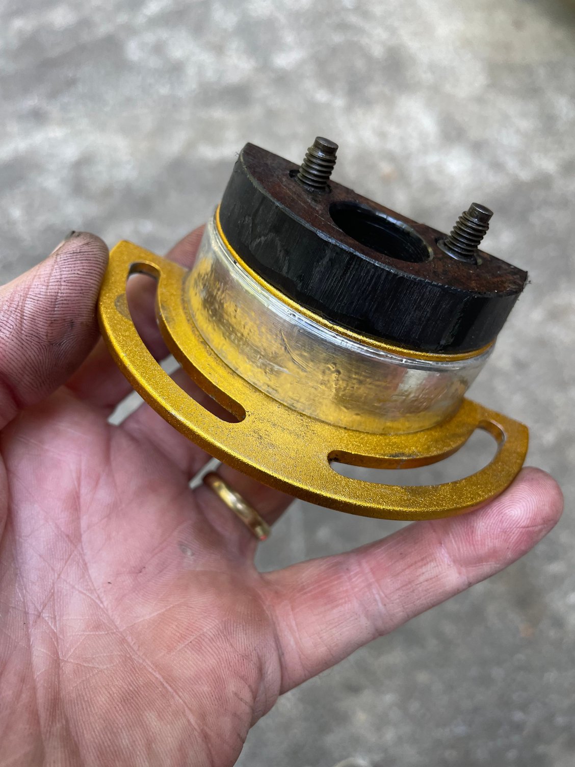 Few days ago I started the dreaded water pump replacement. After help from you guys and youtube university…lol….I opted for giving the timing chain tool try and I could see where the problem with the tool was….to much slack in fitment of the tool. So I used hvac aluminum duct tape strips to build the radius up to take up that slack. And then after measuring the depth from cover to the sprocket….found out the tool was 1/2” to short. So I made a plastic spacer of that thickness so when tightened the tool up to the sprocket there could be no or very little slack for the sprocket to tilt and give tensioner a chance to advance. So far car runs and sounds normal even at higher rpms. I will include pic of tool I rented and spacers